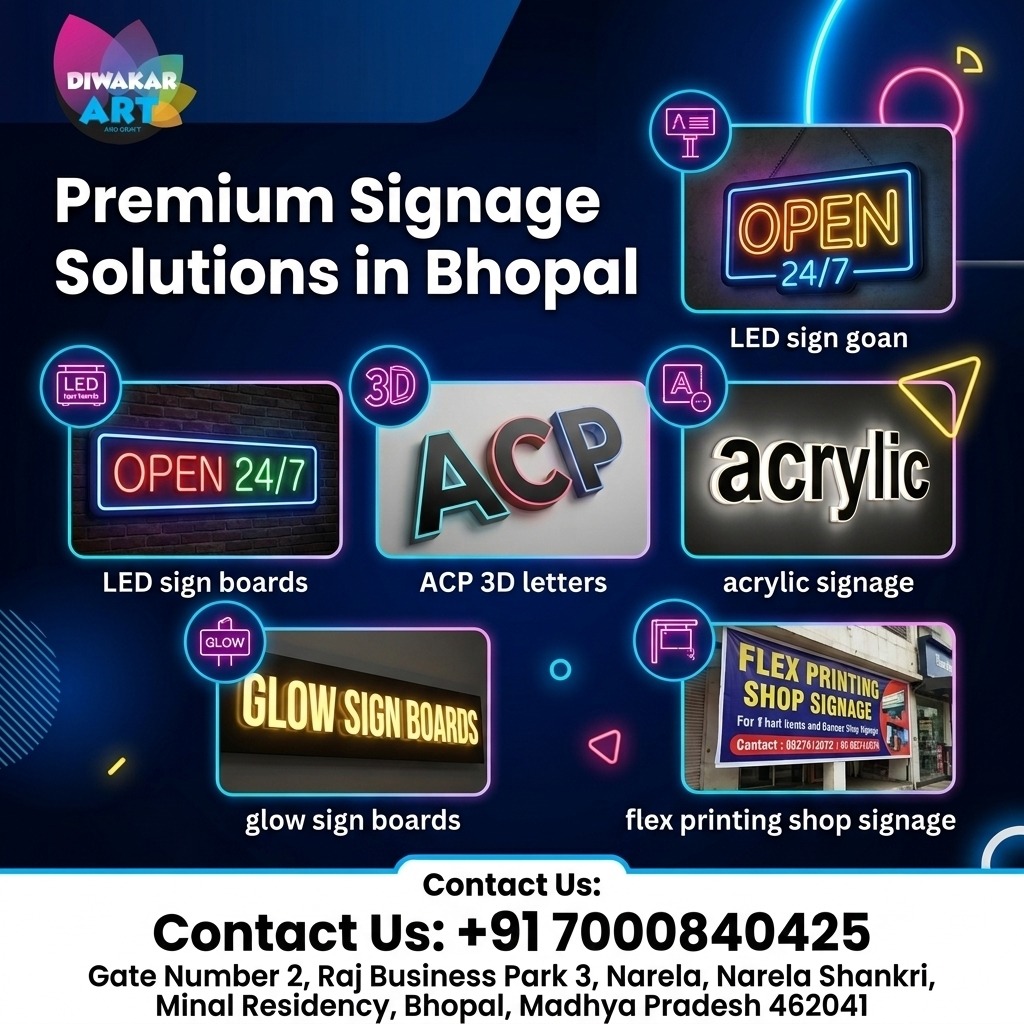 DIWAKAR ART AND CRAFT - flex printing,LED board, glow sign board, neon sign board 22 Google reviewsPosted on Aman JhariaTrustindex verifies that the original source of the review is Google. Wonderful experiencePosted on Dinesh SenTrustindex verifies that the original source of the review is Google. Very nice Diwakar sar good quality good work I am very happy aage dobara aapko hi order denge mujhe apna led board bahut achcha lag raha hai thank you so muchPosted on Jay RajputTrustindex verifies that the original source of the review is Google. Highly recommended. Excellent led board work by Diwakar art!Posted on Shivam malviyaTrustindex verifies that the original source of the review is Google. Got the ACP elevation and sign board of my pharmacy done from this firm and I’m very happy with the result. The design looks modern, finishing is neat, and they delivered on time. My store now stands out and customers have already noticed the change. Highly professional work - definitely recommend them.Posted on Amar KumarTrustindex verifies that the original source of the review is Google. Amazing work with quality and on time.Posted on Prashant thakurTrustindex verifies that the original source of the review is Google. Very good experience service is very good I am so happy your servicePosted on MOHAMMAD SHAHID MASROORTrustindex verifies that the original source of the review is Google. Very nice work......nice designPosted on Raja SoniTrustindex verifies that the original source of the review is Google. "I got my shop signboard designed by Mr. Deepak Diwakar, and I am highly satisfied with the outcome. He delivered excellent quality, attractive design, and timely service. His approach is professional, reliable, and efficient. I truly appreciate his work and would definitely recommend him for future projects. Thank you, Deepak JiPosted on priyank sharmaTrustindex verifies that the original source of the review is Google. Great work With reasonable price...🙂🙂